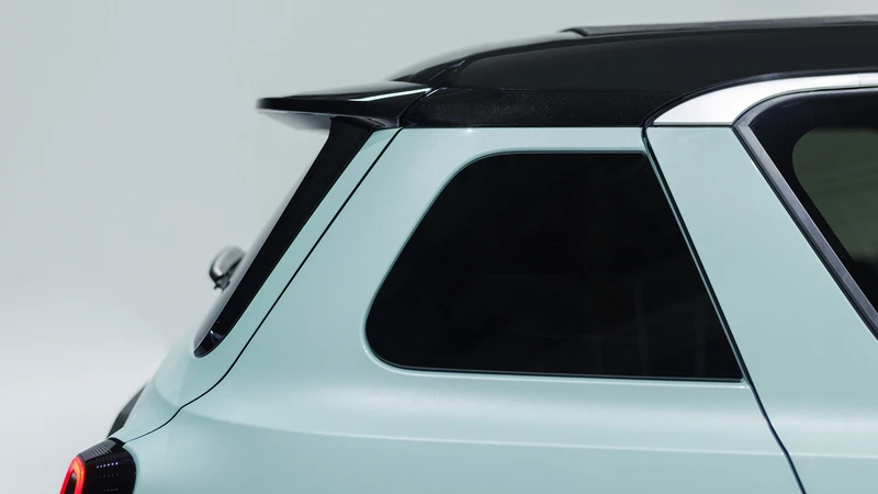 Entre los varios elementos nostálgicos están las luces traseras verticales de corte angosto y las rejillas, ciegas, en la base del capot. LED, llantas de hasta 18” protectores y paragolpes abultados completan el repertorio moderno al que se suma techo en negro con apertura nostálgica tipo cortina.